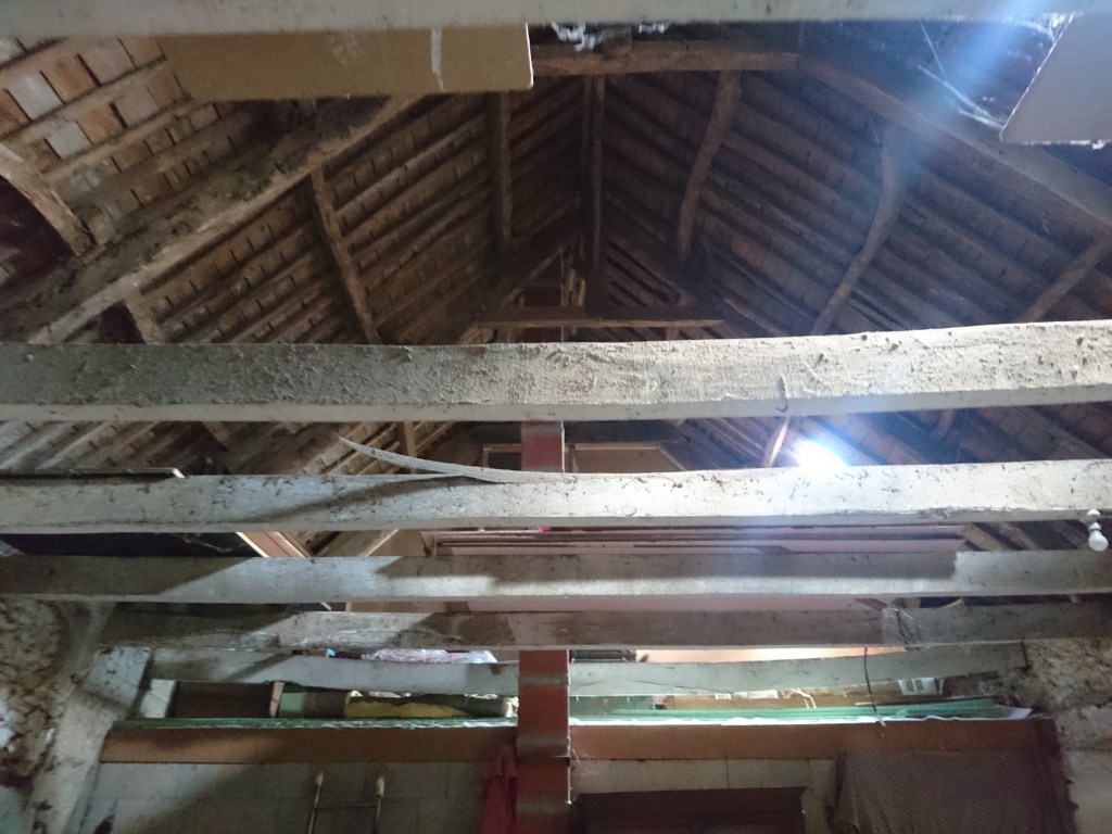 Les anciens propriétaires avaient fait réaliser des travaux à l’étage pour réaliser 2 chambre. Le gros problème, c’est que les poutres porteuses sont attaquées et que nous ne pouvons nous permettre de continuer les travaux à l’étage. C’est pourquoi il à été décidé de remplacer toutes les poutres du R+1.