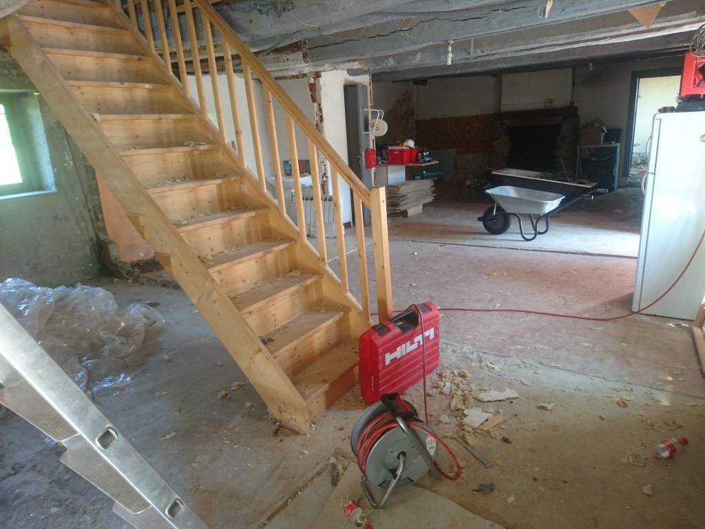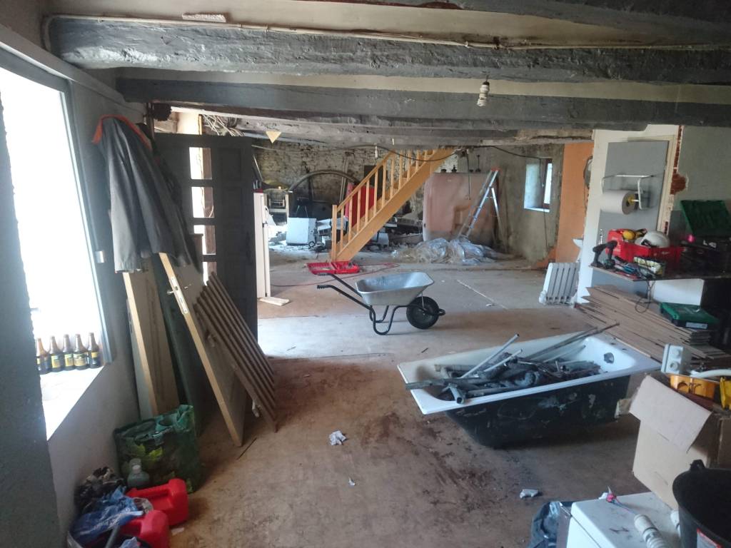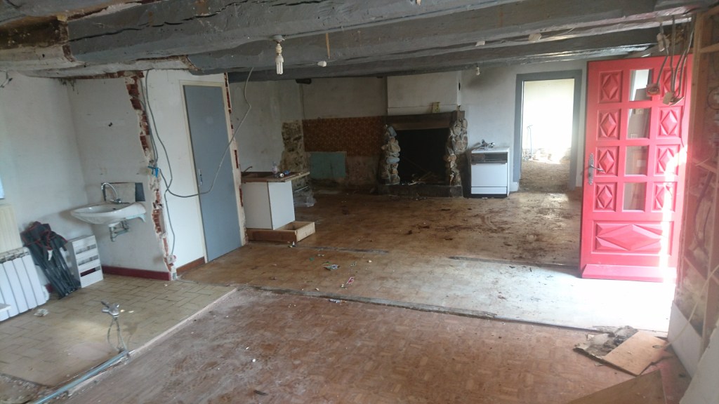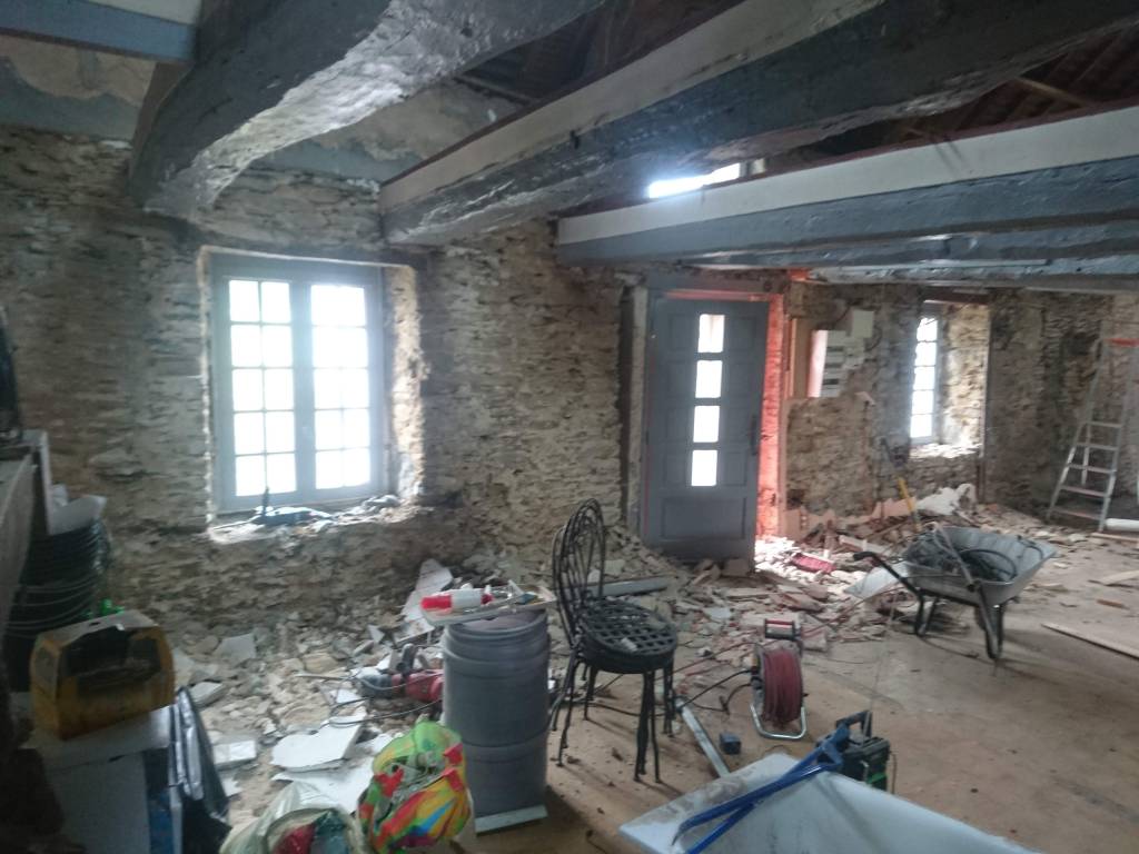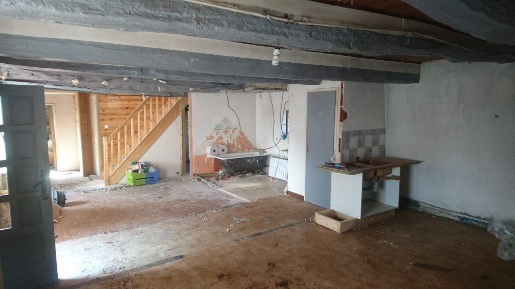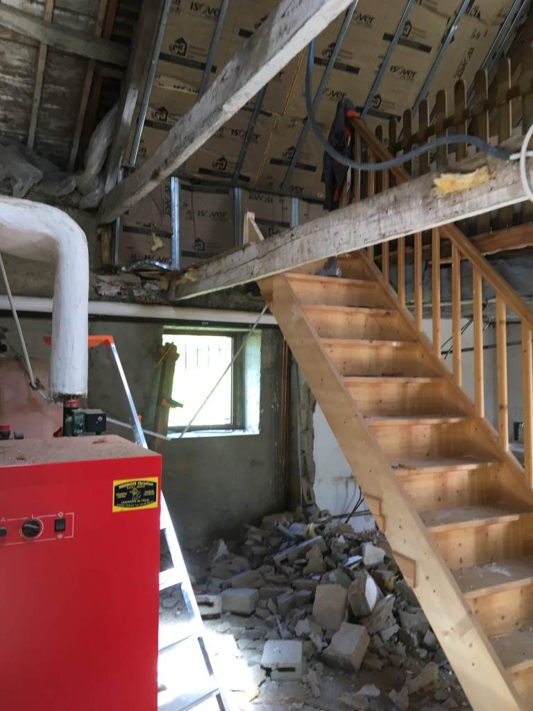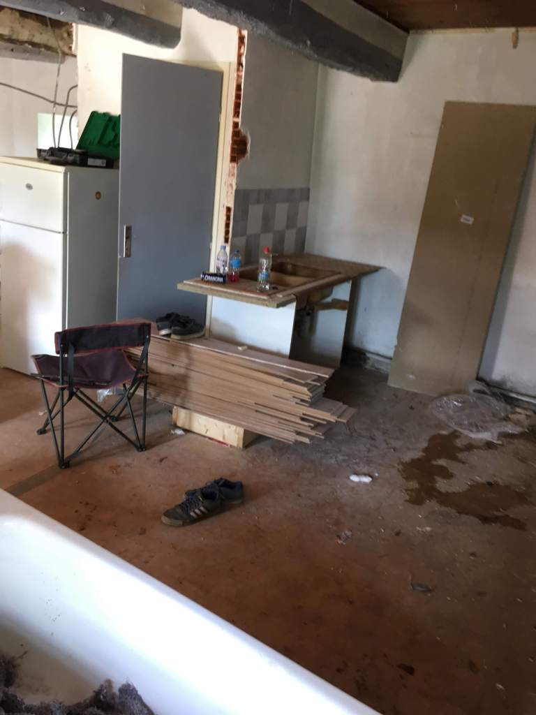 Dans les Premiers jours on s’est attelé à enlever le mobilier, la cuisine, la Salle de Bain, et les cloisons sèches en Placo du RDC et de l’étage.