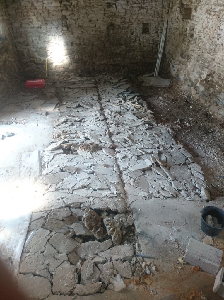 J’ai profité de ma fin de journée pour essayer mon petit piqueur sur la dalle de l’étable. J’était bien content, ça se faisait tout seul.