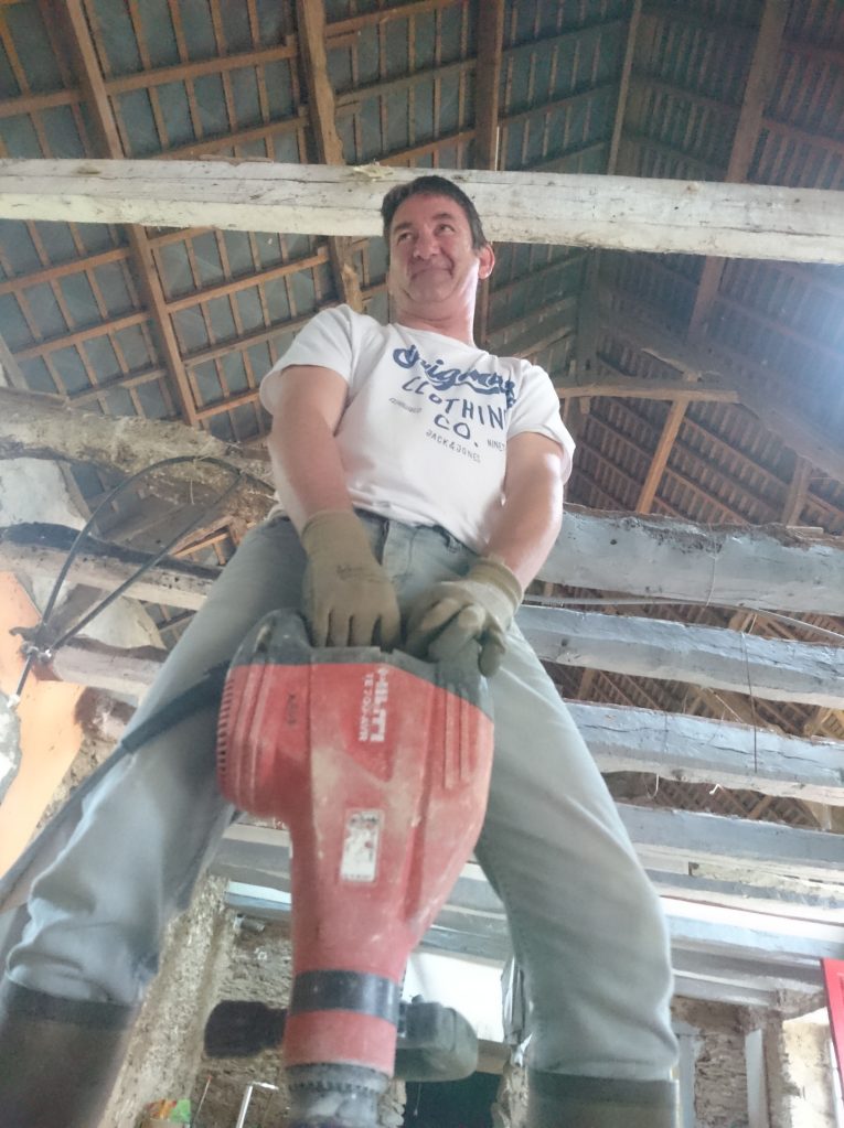 Rien de bien compliqué, l’objectif des prochains jours, désosser la maison, détruire les cloisons, tout mettre en déchet’ grâce à mon Master, qui à été recruté pour cette sacrée mission, je vous le présente :