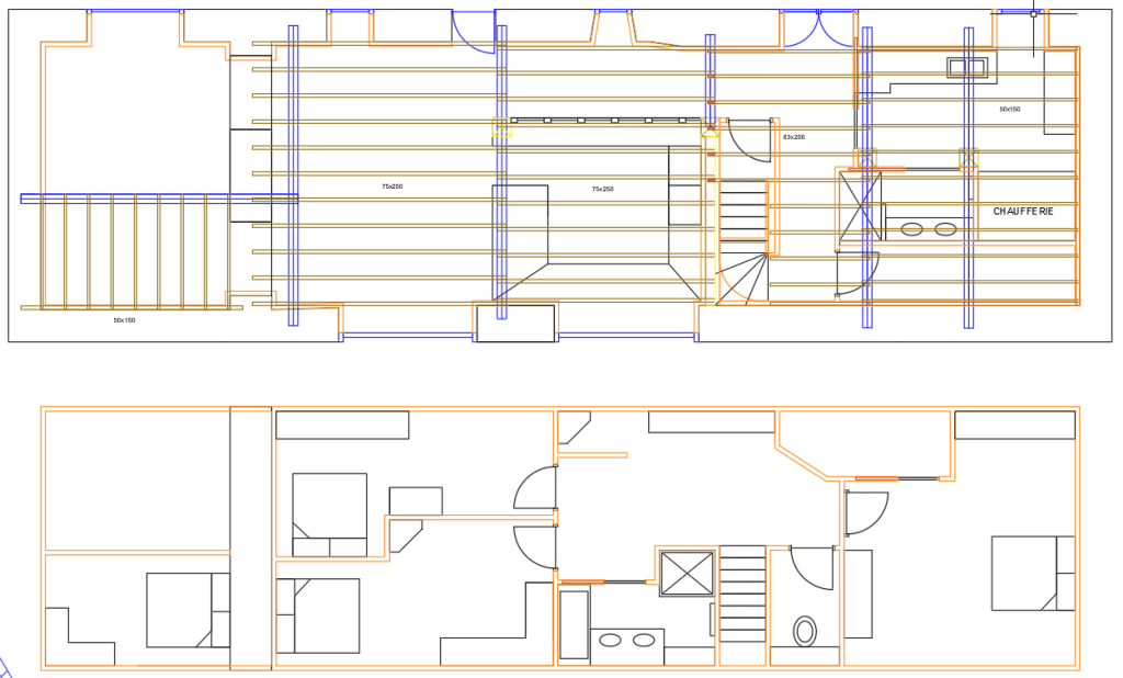 Nous concernant, l’une des phases la plus importante que l’on à du résoudre était le nouveau plancher de l’étage. Les poutres existantes étant à changer, il à fallut réfléchir à comment les changer de la manière la plus intelligente en limitant les frais. En fonction de l’aménagement intérieur, j’ai chercher des zones pouvant reprendre des charges, afin d’optimiser la section des poutres et éviter des frais trop important. Ce sujet sera abordé dans un article dédié.