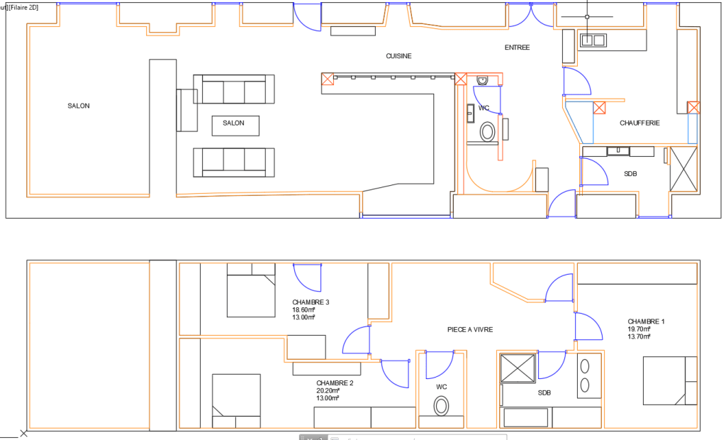 Une fois les grandes lignes projetées, il à fallu commencer à réaliser des plans d’exécutions, qui pourront être utilisés lors des travaux. Ces plans doivent absolument être à l’échelle. Dans mon cadre professionnel, j’utilise AUTOCAD. Ce logiciel est payant, ce qui est normal au vu de ses capacités. Je me permet des vous donner une astuce, il est disponible gratuitement et de manière illimité pour sa version étudiante : https://www.autodesk.fr/education/free-educational-software. Pour l’utilisation faite dans ce contexte, c’est largement suffisant, le seul compromis à accepter, c’est qu’a l’impression des plans, il y a un bel encadré précisant que les plans ont été réalisés à partir d’une version étudiant. Cela permet de décourager des Pro d’utiliser cette version, lorsqu’ils ont à communiquer leur plans aux maîtrises d’oeuvre ou clients.