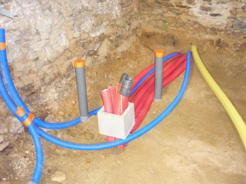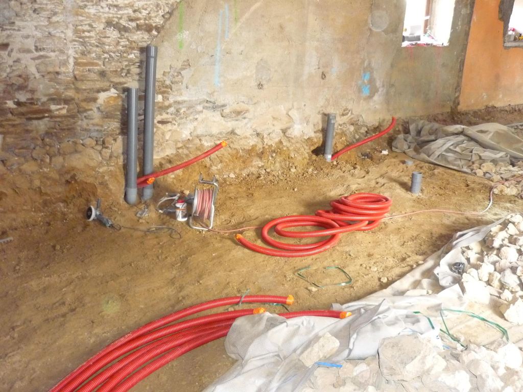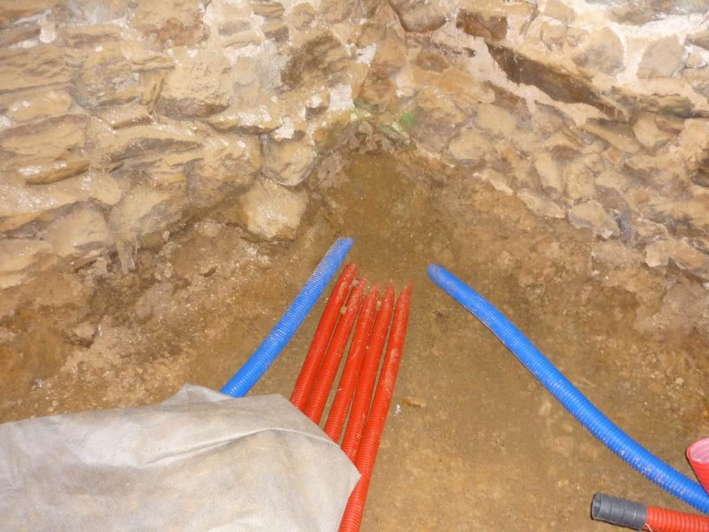 Sur cette dernière photo, ont peut voir l’endroit d’ou repartent mes vieilles poutres qu’il me reste encore à changer. Surtout, essayer de couder le moins possible vos fourreaux, ca ne pourra que faciliter vos futur passages de câbles ou de PE qui sont plutôt rigides.