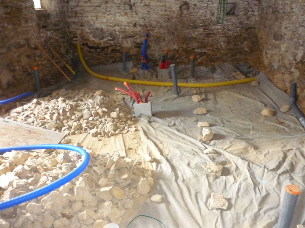 Bon et bien maintenant que l’assainissement est terminé, l’objectif prochain est le coulage de la dalle béton du RDC. Pour ça, il faut tirer quelques fourreaux et réaliser le hérisson. Ce dernier à pour principal objectif, de créer une zone stérile entre la dalle et la terre, afin que l’humidité ne puisse pas être transmise dans la dalle béton.