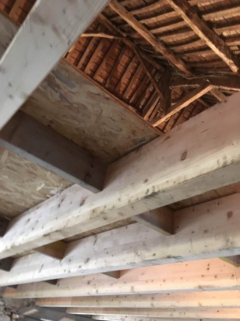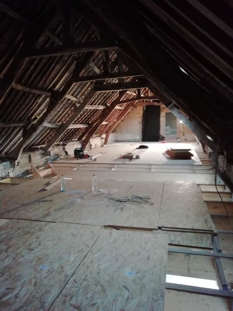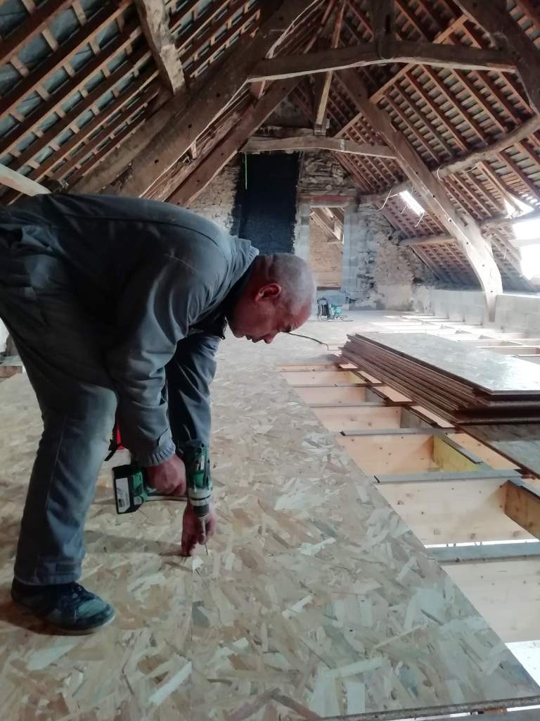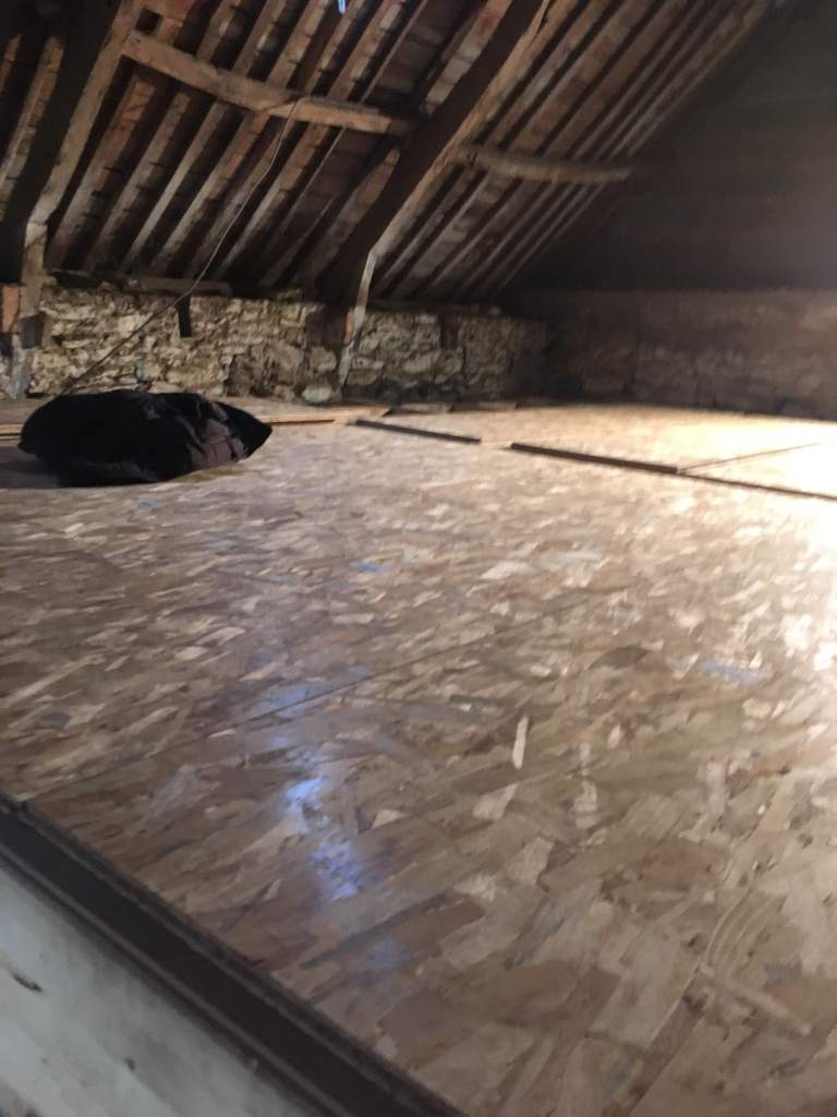 - Il y à 2 ou 3 endroit ou malgré le parquet posé, en sent que certains raccords de plaques OSB se sont affaissées. Ca fait un très leger creux qu’on peut sentir en marchand.
