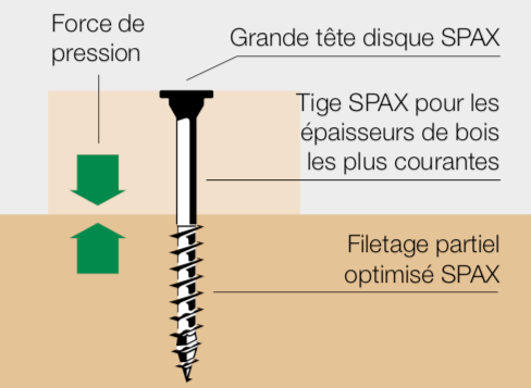 Voici une illustration, pour expliquer mes propos. Au passage, je conseille vraiment la Marque SPAX, J’ai également beaucoup travaillé avec ROCKET, mais j’ai préféré SPAX.